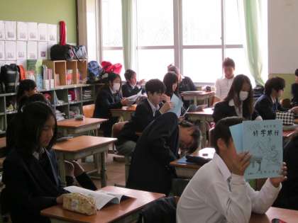 3年生は、朝読書をしながら、5月の修学旅行のしおりを宵いでいる人が多かったです。