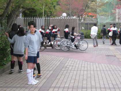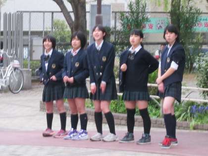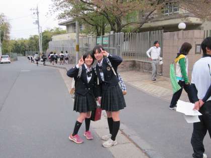 今日は、下校時に女子バレー部が「さよならー!」とさわやかなスマイルで、送り出してくれます。ありがとう!照れくさい生徒は挨拶の列の後ろを通って帰っていきます。