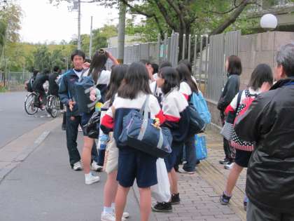 校門前は1日で一番混雑します。