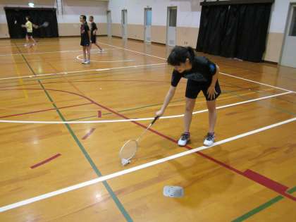 今日一番びっくりしたことは、バドミントン部の練習を見に行っていたら、床に落ちたシャトル(羽根)を手でひらわずに、ラケットで「ひょい!」とひろって、「クィッ」とラケットの網の部分に乗せてしまうではありませんか!!!!これはびっくり。何度もやってもらいましたが、いとも簡単に「ひよぃっ」とひろっちゃうんですね。マネしてやらせてもらったんですが、全くできませんでした。おそらく、こんなこと平気で出来るくらい