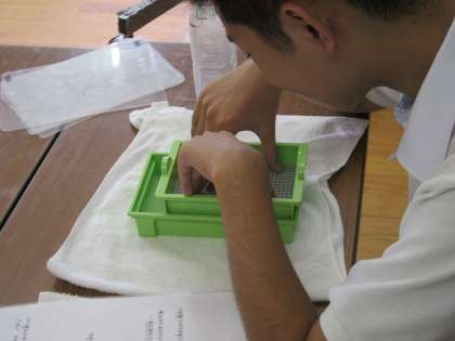 3年5組の授業では、手すきのハガキ作りを行いました。