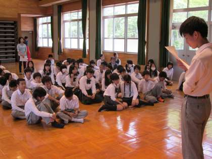 今の2年生は、マイクなしでもきちんと話が聞けるようになりました。