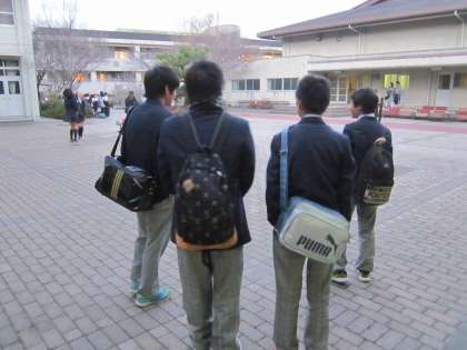 4名そろって、校舎から出てきました