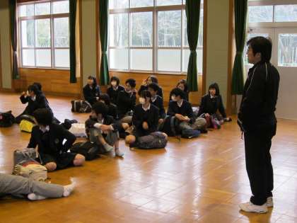 受験する生徒は、ホールで最後の諸注意がありました