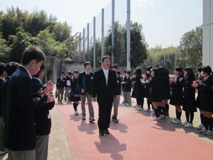 在校生と保護者で花道を作ります。