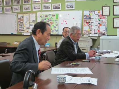 レポーターの方と西京警察の方が来校されまずは原稿チェック
