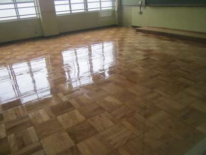 大きな台車が、黒ずんだ床をきれいに削り、