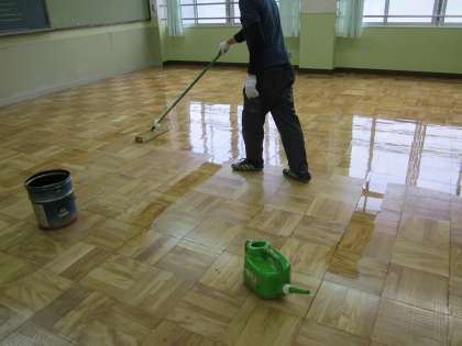 大きなモップ状の刷毛でぬられます。