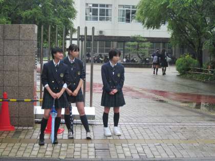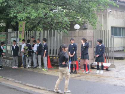 生徒会役員や委員の人が正門に