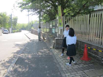 あいさつと同時に、校門付近の