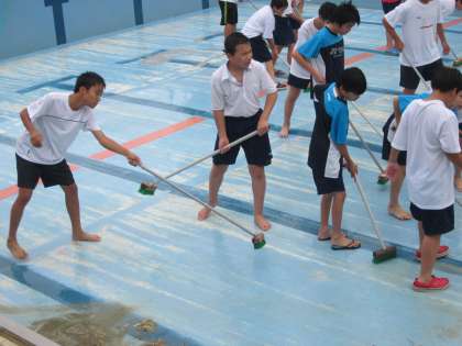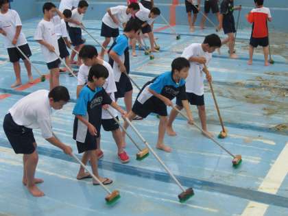 雨の中 プール清掃 3