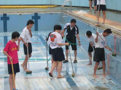雨の中 プール清掃 7