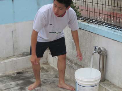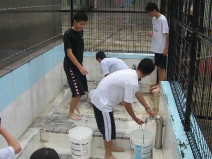 雨の中 プール清掃 9