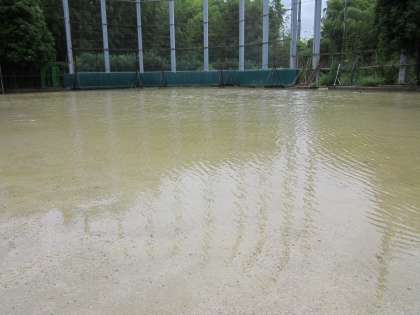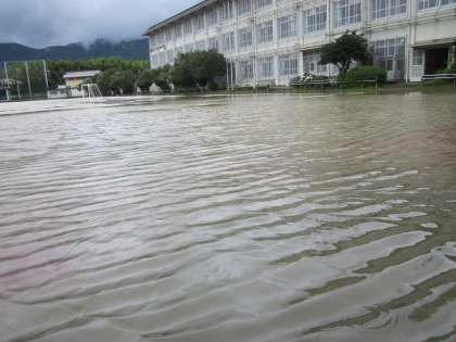 学校敷地内に水がたまるように