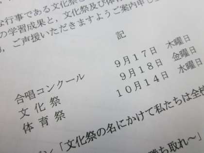 「文化祭ならびに体育祭のご案内」を