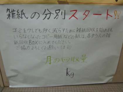 今まで、教室の中で古紙・紙クズを
