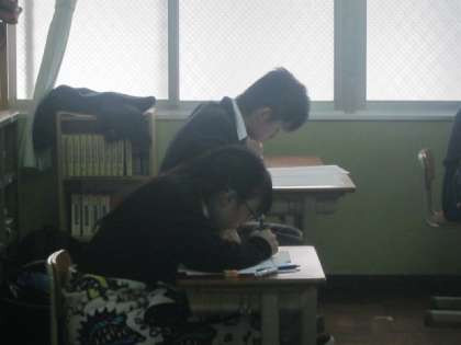 落ち着いてテストに取り組んでいます