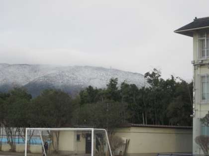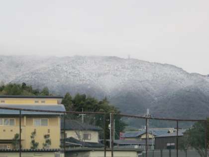 昨日の雪で、西山が白く