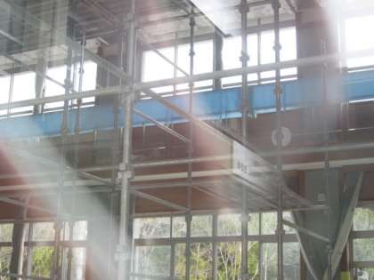 約2か月、工事関係者の方を支えた足場がホールの