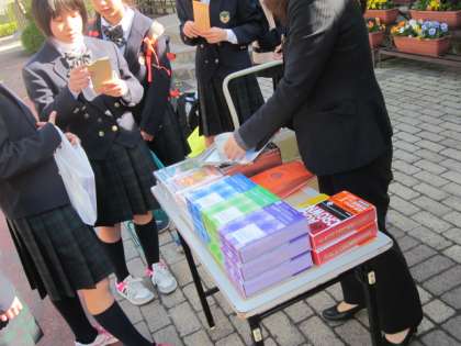 朝に教材の販売がありました