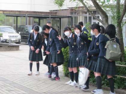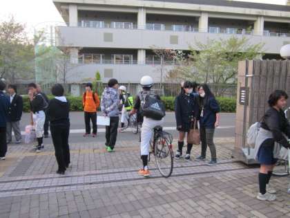 校門前は、一日で一番のにぎわいです!