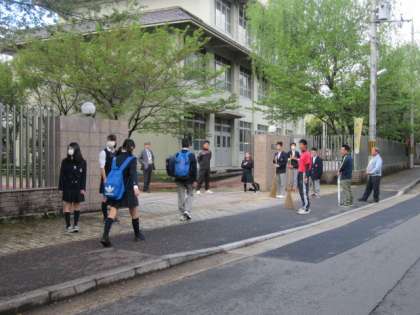 さぁ、掃除が終わるとあいさつ運動に変わります!!
