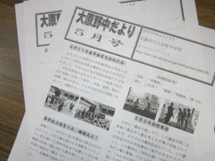 本日、学校だより「大原野中だより」