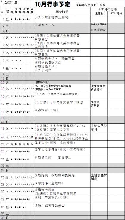 10月行事予定