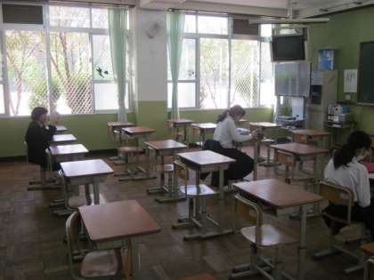 朝のテスト前の教室