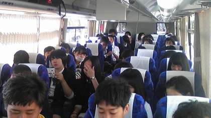 バス内に朝から歓声が響きます