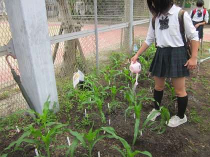 とうもろこしに毎日水をやります