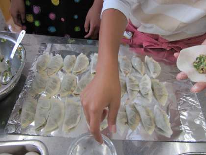 餃子の餡ができたら一つずつ