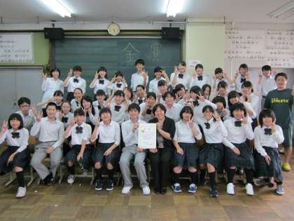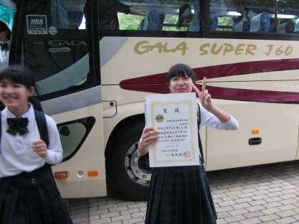 吹奏楽部が金賞の賞状を手に