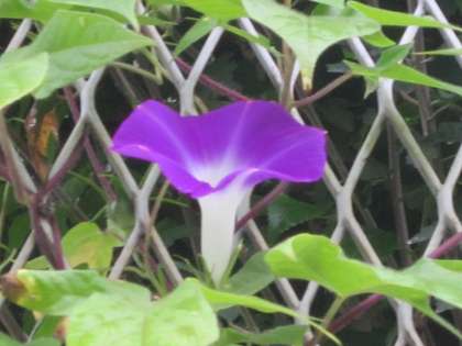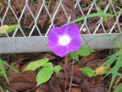 学校の周囲に朝顔が咲いてます
