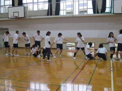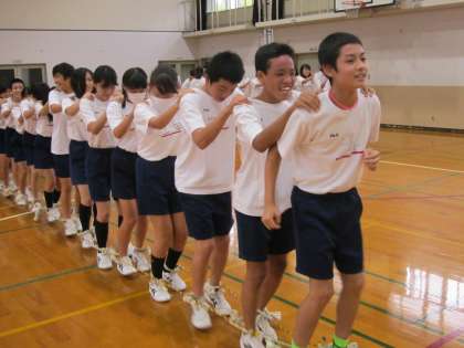 赤団はムカデリレーの練習です