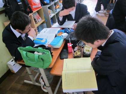昼食中の3年の教室です