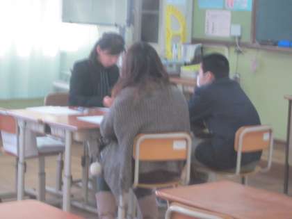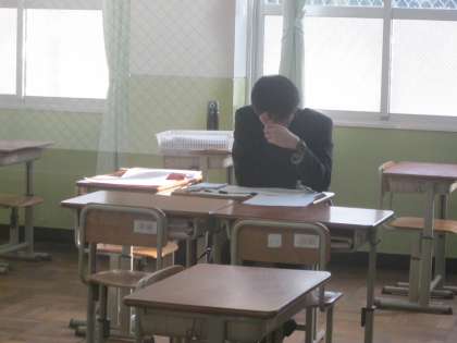 先生が懇談を待っている姿が