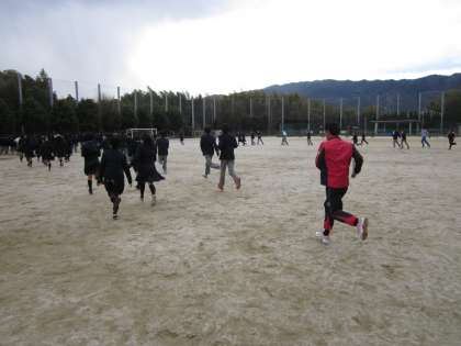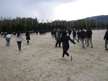 グランドに出たら校舎に遠い位置まで