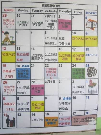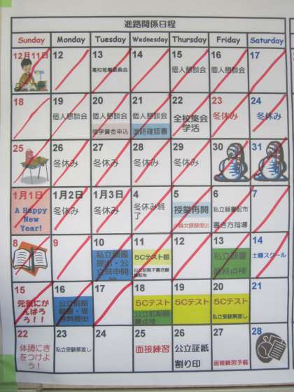 「進路カレンダー」がはられています