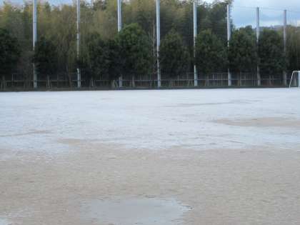 グランドは昨日の雪がうっすらと残っています