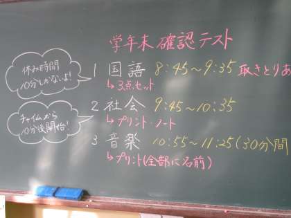 黒板には時間割がかかれています