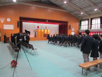 たくさんの人の大きな拍手で迎えられる中,新入生74名は