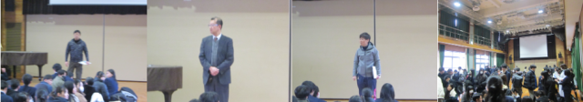 令和8年2月9日(月) 3年生は私立高校入試事前指導を行いました。校長先生・学年主任からの激励の言葉をいただきました。次に、進路指導主事から全体への諸注意があり、その後、高校別の注意がありました。Do your best!