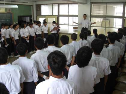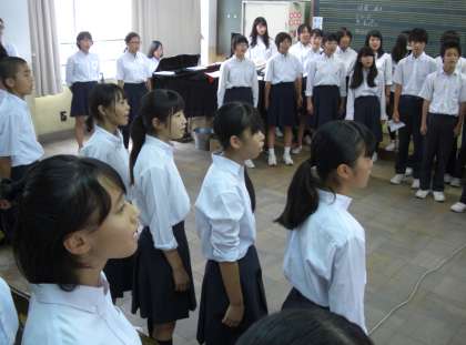 合唱コンクールの練習では、2クラスが合同で練習していました。一緒に歌う声は、弱声のところは芯があり、強声のところは迫力がありました。