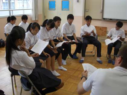 メンバーがまるく集まっての読み合わせ。さっきのダンスパフォーマンスとはどのようにつながるのでしょう。楽しみです。