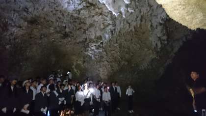 ガマを舞台とした劇などの印象では、もっと狭いところだと感じられるのですが、奥行きのある、大きな空間が広がっています。