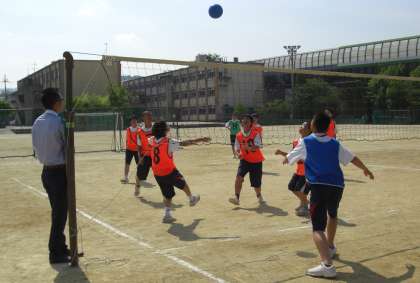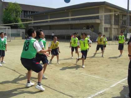 コート内からサーブしてもよく、学年に応じたルールを設定することで、誰もができるだけ苦手意識を固定化せず、またやりたいなと思えるように工夫されています。