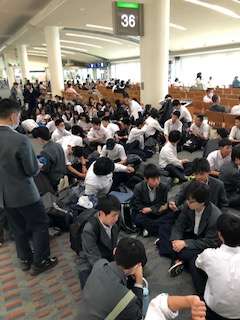 着陸後の那覇空港ロビーの様子です。朝が早かったのでお腹がすいてきている頃です。
