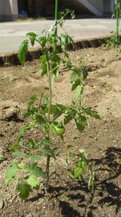 7組では現在,いろいろな野菜を栽培しています。写真はその一部のプチトマトとオクラです。プチトマトがかわいい実をつけています。暑くなってきているので水やりを含めた手入れが大変ですが,ぜひ立派な実をつけてほしいです。ところでできた野菜はどうするのですか?。楽しみです。