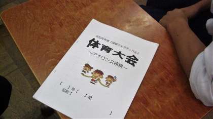 明後日開催の体育大会の予行練習が昨日終了しましたが,それをうけて今日は当日アナウンスを担当する生徒のみなさんの打ち合わせが再度行われました。しっかり練習をして,本番ではわかりやすい案内をお願いします。体育大会の当日の天気予報は晴れ,最高気温は28度ということですが,グランドは30度を超えることが予想されます。熱中症予防のためにも日頃より多く水分を持参してください。
